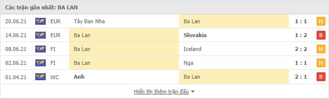 Thống kê phong độ gần đây Thụy Điển vs Ba Lan