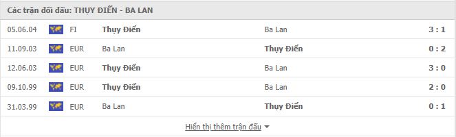 Thành tích đối đầu Thụy Điển vs Ba Lan