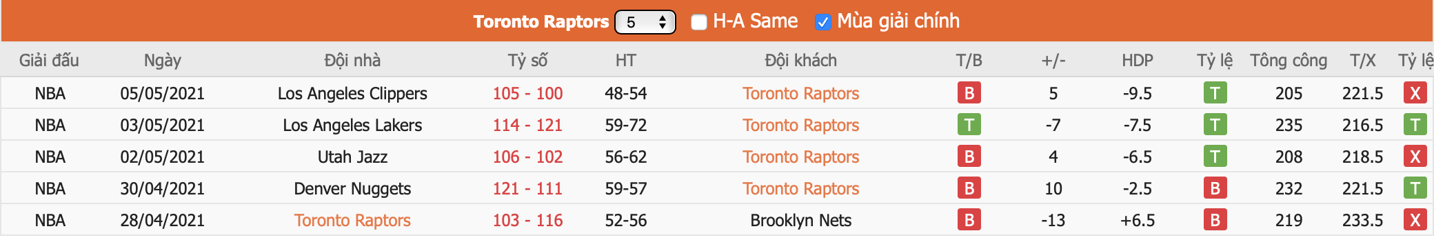 - Phong độ Toronto Raptors