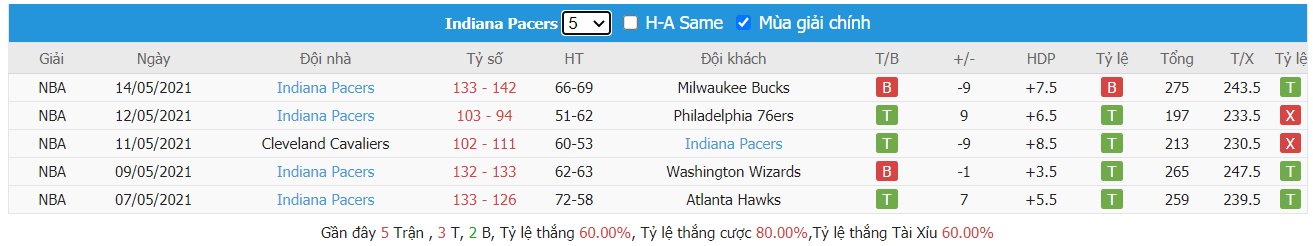 - Phong độ Indiana Pacers