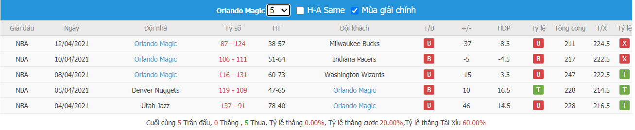 Thống kê cũng chỉ ra được đánh giá cao hơn ở trận tới Toronto Raptors hoàn toàn có thể áp đặt lối chơi tấn công trên đối thủ, điều này thấy rõ nét khi mà đội chủ nhà đã ghi được tới 119 điểm trong trận sân nhà gần nhất trong khi hệ thống phòng ngự của Orlando Magic cũng gây thất vọng khi để mất tới 122 trong trận sân khách đã qua. Từ đó dẫn tới 3 trên 4 trận gần nhất của Toronto Raptors và 6 trên 8 trận đã qua của Orlando Magic cũng đã ghi nhận các kết quả chung cuộc nổ tài. Vậy nên cửa tài vẫn được đánh giá cao ở trận đấu tới.