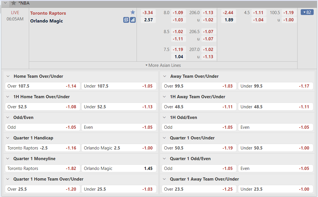 Bảng tỷ lệ kèo Toronto Raptors vs Orlando Magic