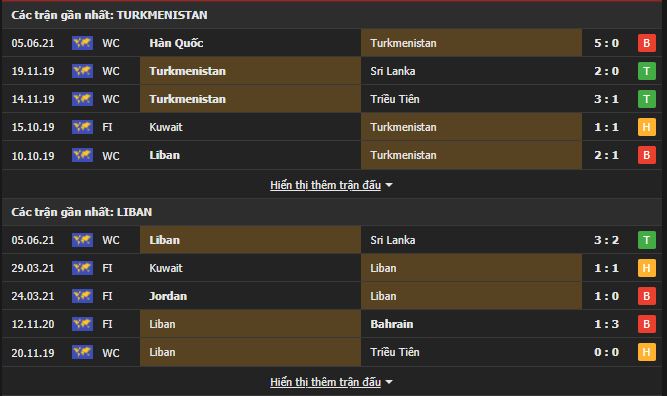 Phong độ gần đây Turkmenistan vs Lebanon: