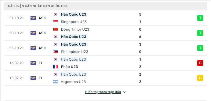 Phong độ gần đây U23 Hàn Quốc vs U23 Malaysia