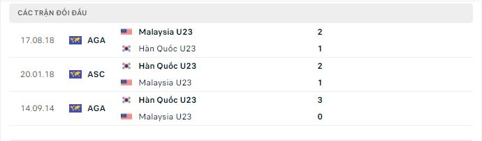 Thành tích đối đầu U23 Hàn Quốc vs U23 Malaysia