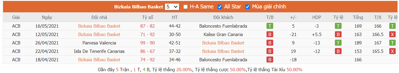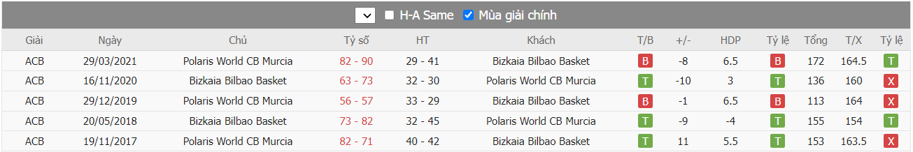 Thống kê cho thấy đội khách RETABet Bilbao Basket vẫn duy trì được phong độ thực dụng trong thời gian đã qua khi mà cứ trung bình mỗi trận trong tổng số 5 trận sân khách gần nhất, đội quân của HLV Luis Casimiro đều chỉ ghi được trung bình vỏn vẹn 70 điểm và cũng chỉ để mất trung bình vỏn vẹn 78 điểm. Từ đó dẫn tới đã có tới 8 trên tổng số 10 trận sân khách đã qua của đội bóng này đều đã không thể vượt mức niêm yết kèo tài xỉu theo mức TLCA. Vậy nên khả năng bùng nổ tỉ số ở trận đấu tới càng không được kỳ vọng hơn khi mà trong 4 trận sân nhà đã qua UCAM Murcia cũng đều chỉ ghi được vỏn vẹn 69 điểm mỗi trận.