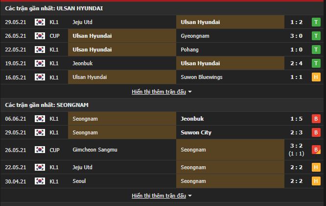 Phong độ gần đây Ulsan Hyundai vs Seongnam:
