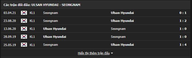 Thành tích đối đầu Ulsan Hyundai vs Seongnam: