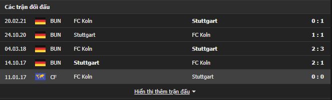 Thành tích đối đầu VfB Stuttgart vs FC Koln: