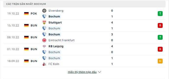 Thống kê phong độ gần đây VfL Bochum vs Union Berlin