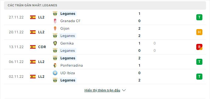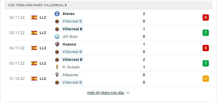 Thống kê phong độ gần đây Villarreal B vs Leganes