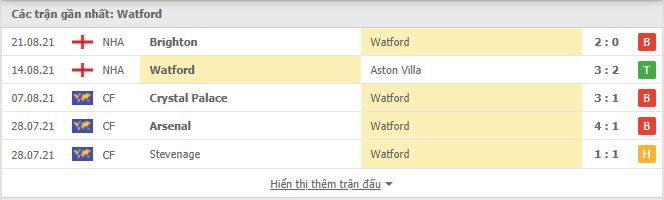 - Phong độ Watford