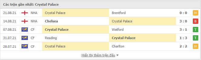 - Phong độ Crystal Palace