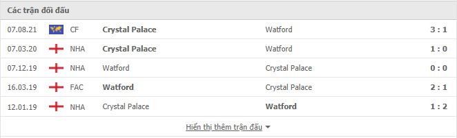 Thành tích đối đầu Watford vs Crystal Palace