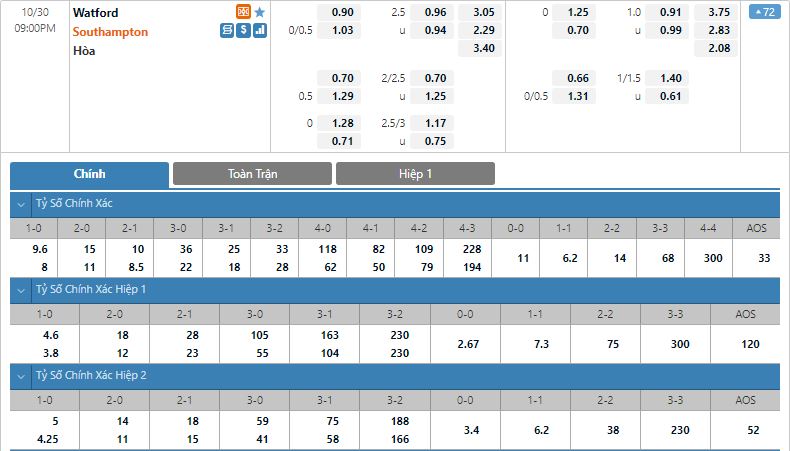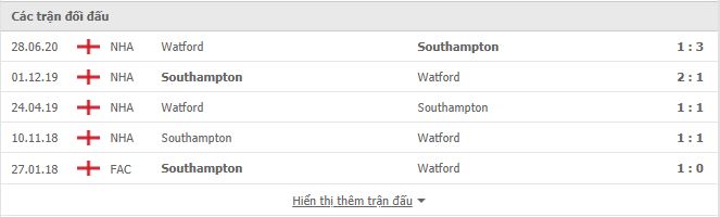 Bảng tỷ lệ kèo bóng đá Watford vs Southampton