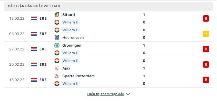 Được chơi trên sân nhà nhưng Willem II không nhận được sự ủng hộ từ lịch sử. Thống kê ở 10 lần gặp nhau gần nhất cho thấy sự vượt trội của các vị khách AZ Alkmaar với 5 chiến thắng, hai đội hòa nhau 2 lần và các học trò HLV Denny Landzaat chỉ có 3 lần ca khúc khải hoàn. Trong 5 lần gần nhất làm khách tại Konig Willem II, AZ Alkmaar chỉ 1 lần nếm trái đắng.