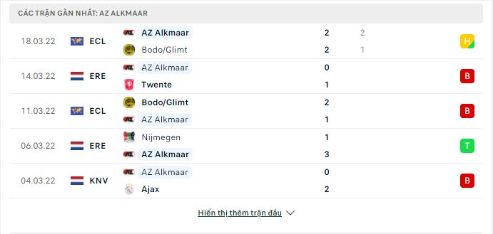 Thống kê phong độ gần đây Willem II vs AZ Alkmaar