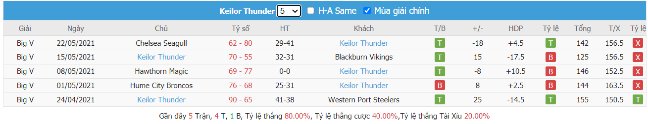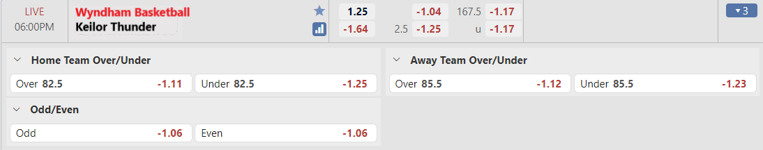 Bảng tỷ lệ kèo Wyndham Basketball vs Keilor Thunder