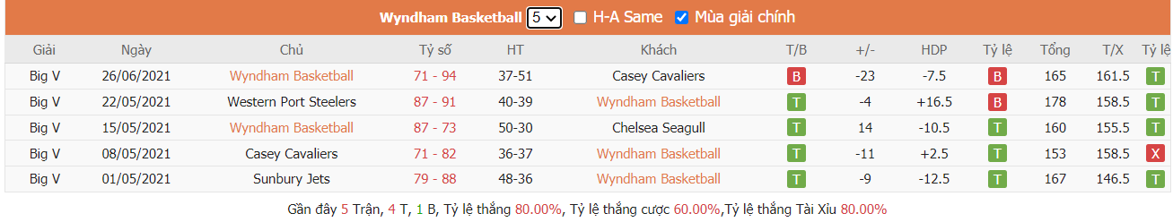 Phong độ gần đây Wyndham Basketball vs Keilor Thunder